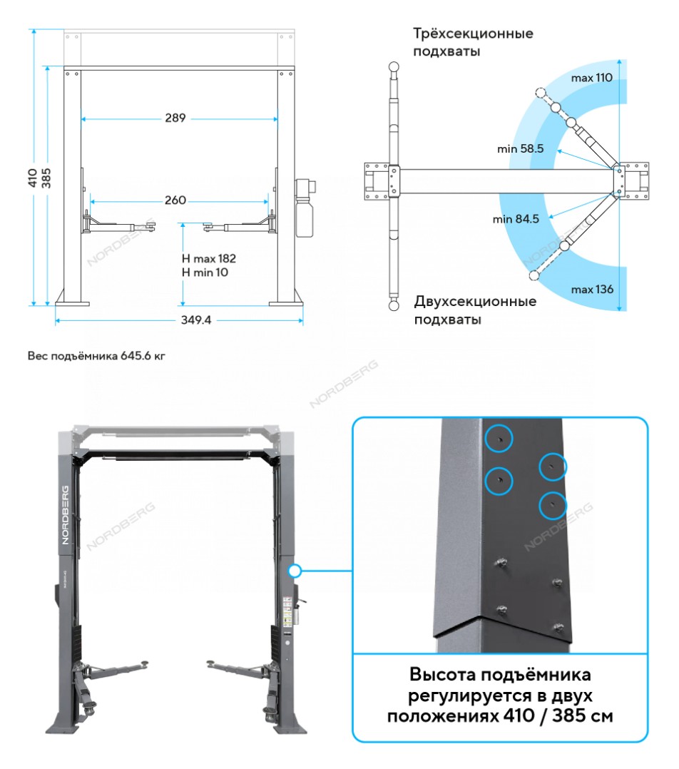 Электрогидравлический двухстоечный 4 т H=4 м, 380 В, синий Nordberg N4120H1-4B_3+2_380