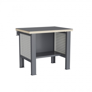 Верстак может комплектоваться одинарным или двойным перфорированным экраном, электромонтажным блоком для установки розеток и дополнительных устройств, а также комплектом освещения с держателем и лампой. Перфорация экрана подходит под стандартные держатели для инструментов, отверток, крючков, полок. Возможна комплектование верстака навесным элементами (держатели, крючки, полки).